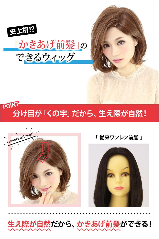 自毛をまったく見せずにスッポリかぶる「かつら」タイプのウィッグ。