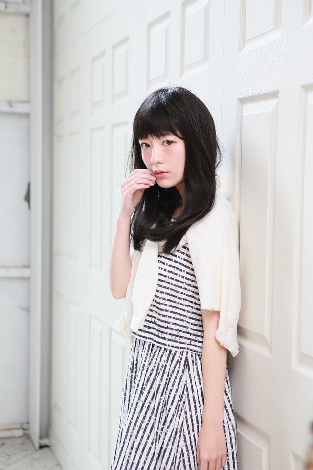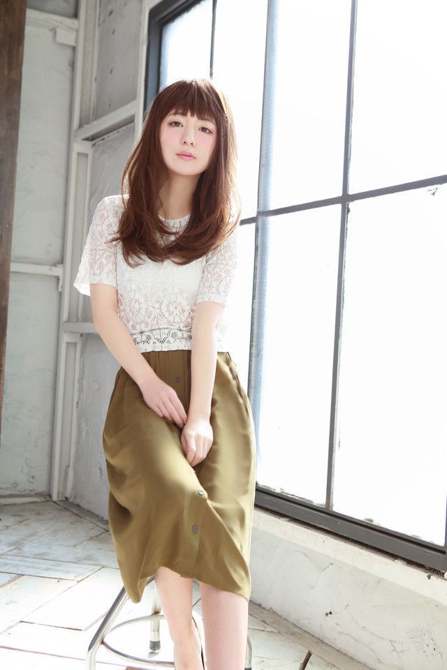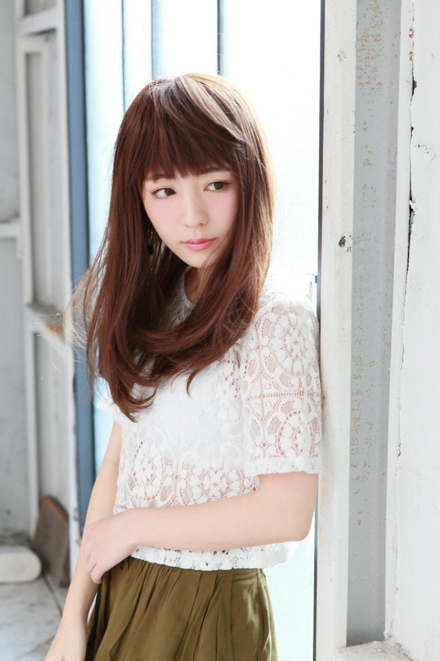 毛先のワンカール×重めバング シンプルなストレートスタイル
